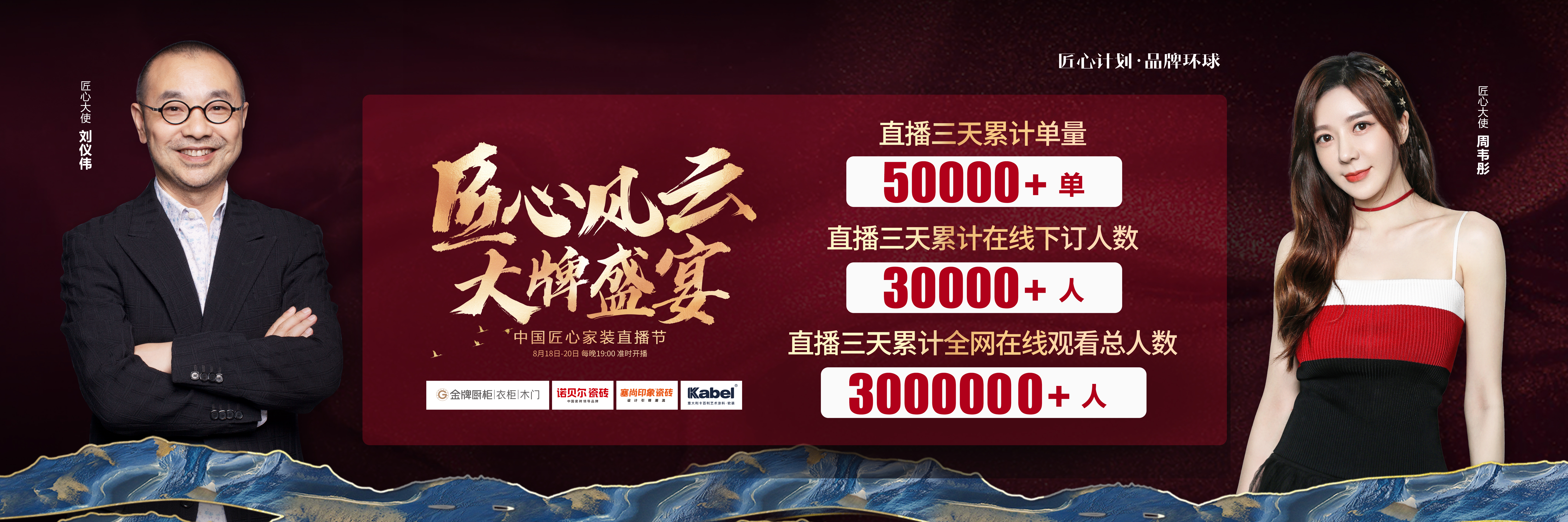 由4008云顶集团厨柜、诺贝尔瓷砖、塞尚印象瓷砖、卡百利艺术涂料联合缔造,创赢科技系统支持全案营销执行的“匠心风云 大牌盛宴”中国匠心家装直播节于8月20日圆满落...